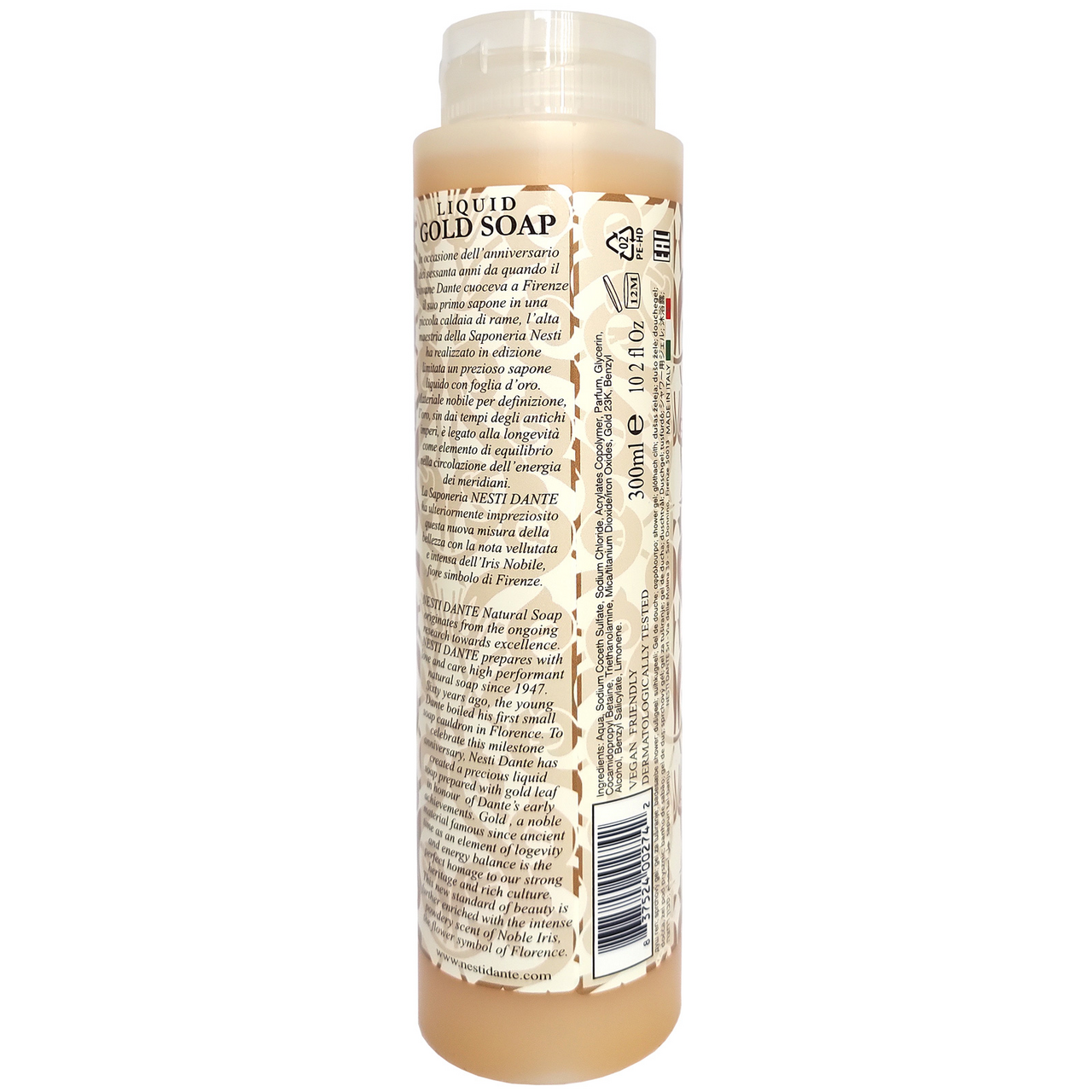 Nesti Dante — экологически чистое мыло, обогащенное растительными экстрактами и маслами. Производится во Флоренции с 1947 года. Luxury Gold Soap (Юбилейное золотое) имеет пудровый аромат королевского ириса — символа Флоренции. В составе содержатся золотые частицы 23 карата - обладают уникальным комплексом свойств: питают и увлажняют, стимулируют обменные процессы, восстанавливают и укрепляют клетки кожи, оказывают противовоспалительное действие и матирующий эффект. Перламутровое сияние мылу придает мика – природная слюда, которая окрашивается минеральными пигментами в разные оттенки.