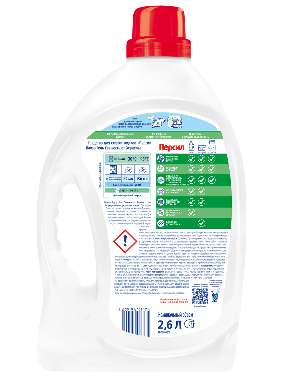 Гель для стирки Персил Свежесть от Вернель 40 стирок, 2.6л