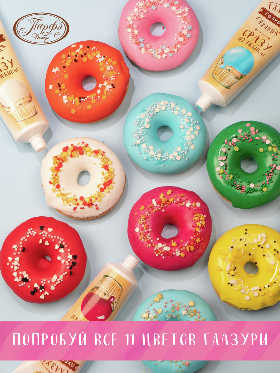 Наносится сразу из тюбика. Удобно и практично: никакой грязной посуды, кондитерских мешков, ложек. Просто опустите закрытый тюбик в горячую воду, разомните, удалите защитную мембрану и наносите глазурь на остывшее изделие. Для рисования тонкими линиями проткните защитную мембрану зубочисткой. Закройте крышечку и храните до следующего использования. Красивые цвета, глянцевый блеск, приятный вкус, умеренная сладость.