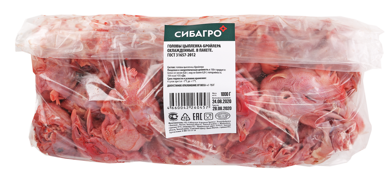 Головы цыпленка-бройлера Сибагро охлажденные, ~1кг