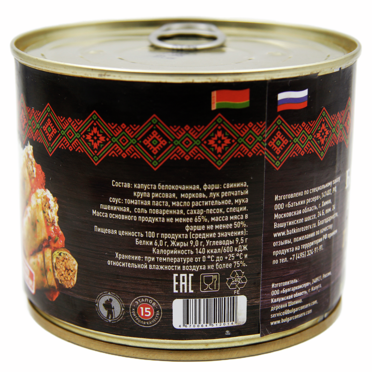 Это натуральный продукт премиального качества. Каждая банка содержит в своем составе капусту белокочанную, фарш: свинина, крупа рисовая, морковь, лук репчатый, а также соус: томатная паста, масло растительное, мука пшеничная, соль поваренная, сахарный песок и специи. Изготавливаются только из натуральных продуктов, без использования консервантов, красителей, искусственных добавок и ГМО. Голубцы с ярким и насыщенным вкусом станут прекрасным дополнением к вашему столу в любое время дня на обед и ужин. Голубцы - это продукт готовый к употреблению сразу после покупки. Голубцы консервированные также отлично подходят для употребления и в холодном виде.