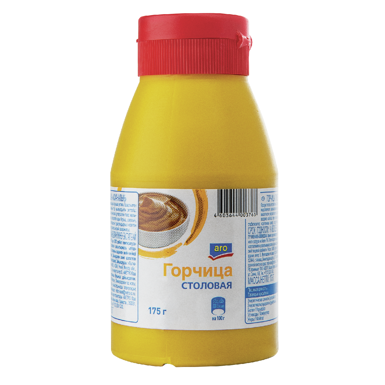 Горчица столовая aro, 175 г помогает дополнить и оттенить вкус любимых блюд, благодаря чему активно используется в кулинарии. Она изготовлена по классической рецептуре, отличается средней остротой и гармонично сочетается с горячими, холодными закусками, разнообразными салатами и бутербродами. Соус придаст нотку оригинальности пасте, сарделькам, котлетам, тефтелям и фрикаделькам. Он дополнит тушеные овощи, жареный стейк или приготовленные на гриле мясные куски. Горчица подходит к картофелю, гамбургерам и яичницу. Она изготовлена из натуральных ингредиентов и представляет собой однородный соус мягкой, нежной консистенции естественного желто-коричневого цвета. Продукт заключен в компактную емкость, которую удобно разместить в дверце холодильника.