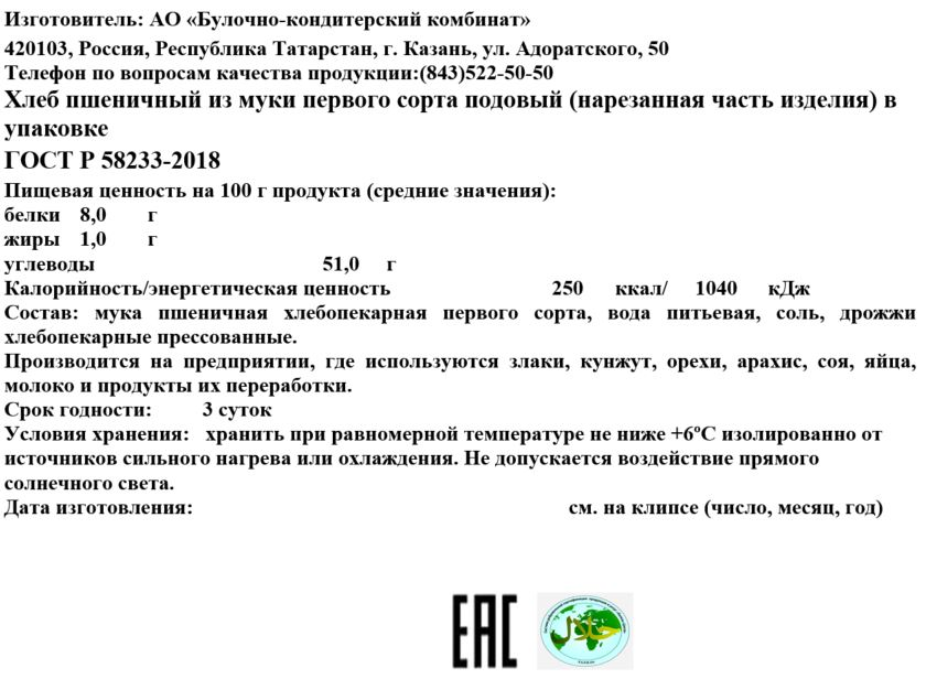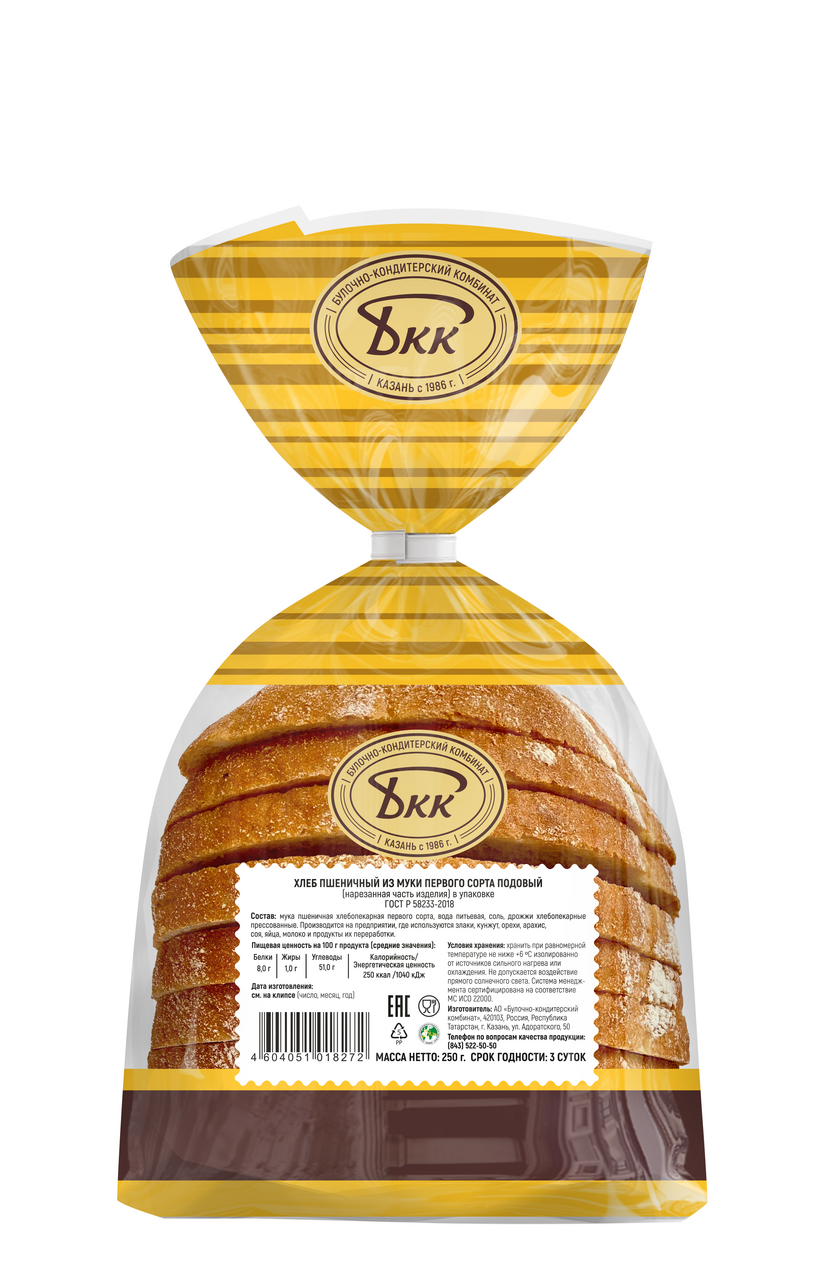 Хлебобулочное изделие, испеченное из муки первого сорта с добавлением жидких дрожжей. Без ГМО, красителей и консервантов. Выпекается по технологиям согласно ГОСТу, в подовых печах. Имеет нежный, мягкий, натуральный вкус.