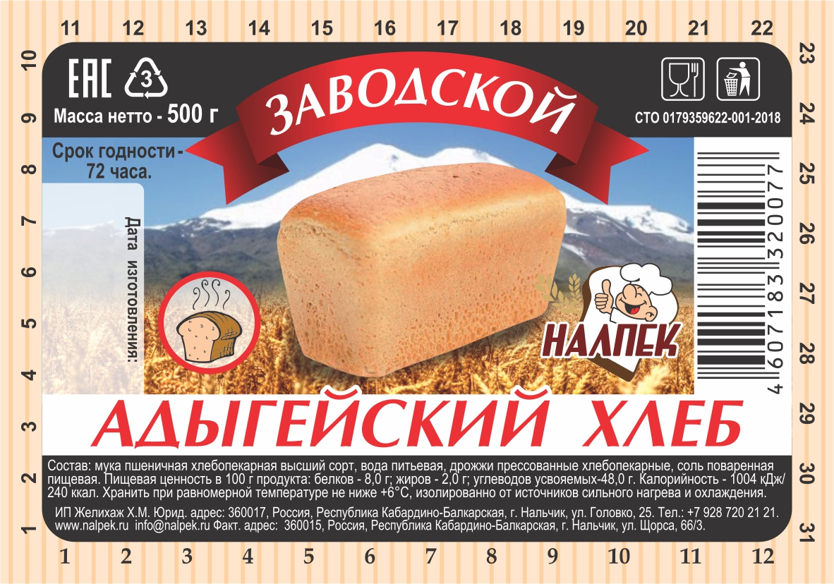 Вкусный хлеб, приготовленный по оригинальному рецепту из пшеничной муки высшего сорта. Продукт идеально дополнит любое горячее блюдо или закуску. Традиционный Адыгейский хлеб идеально подходит для приготовления тостов и сытных бутербродов.