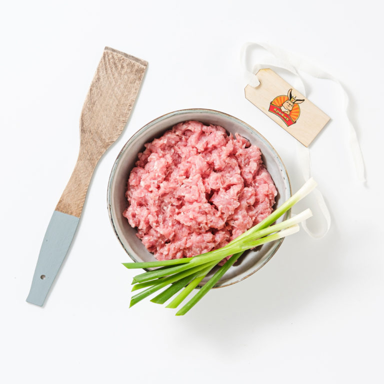 Фарш изготовлен из свежего охлажденного филе. Фарш легче усваивается организмом, во многом благодаря консистенции. При этом все полезные вещества сохранены. Идеально подходит для приготовления котлеток, фрикаделек, тефтелей для детей. Можно просто потушить с овощами. Блюд с фаршем из кролика можно придумать много — простор для фантазии! Мясо кролика считается диетическим. Усваивается оно намного лучше, чем та же го��ядина или свинина. Во-первых, белки, которые содержатся в мясе кролика, усваиваются на 90%. Во-вторых, жиры в этом мясе также воспринимаются нашим организмом намного лучше. Мясо кролика гипоаллергенно, потому его рекомендуют детям, беременным и кормящим женщинам. Благодаря легкоусвояемости, гипоаллергенности, высокому содержанию белков и полезных веществ, мясо кролика лучший вариант для питания детей.