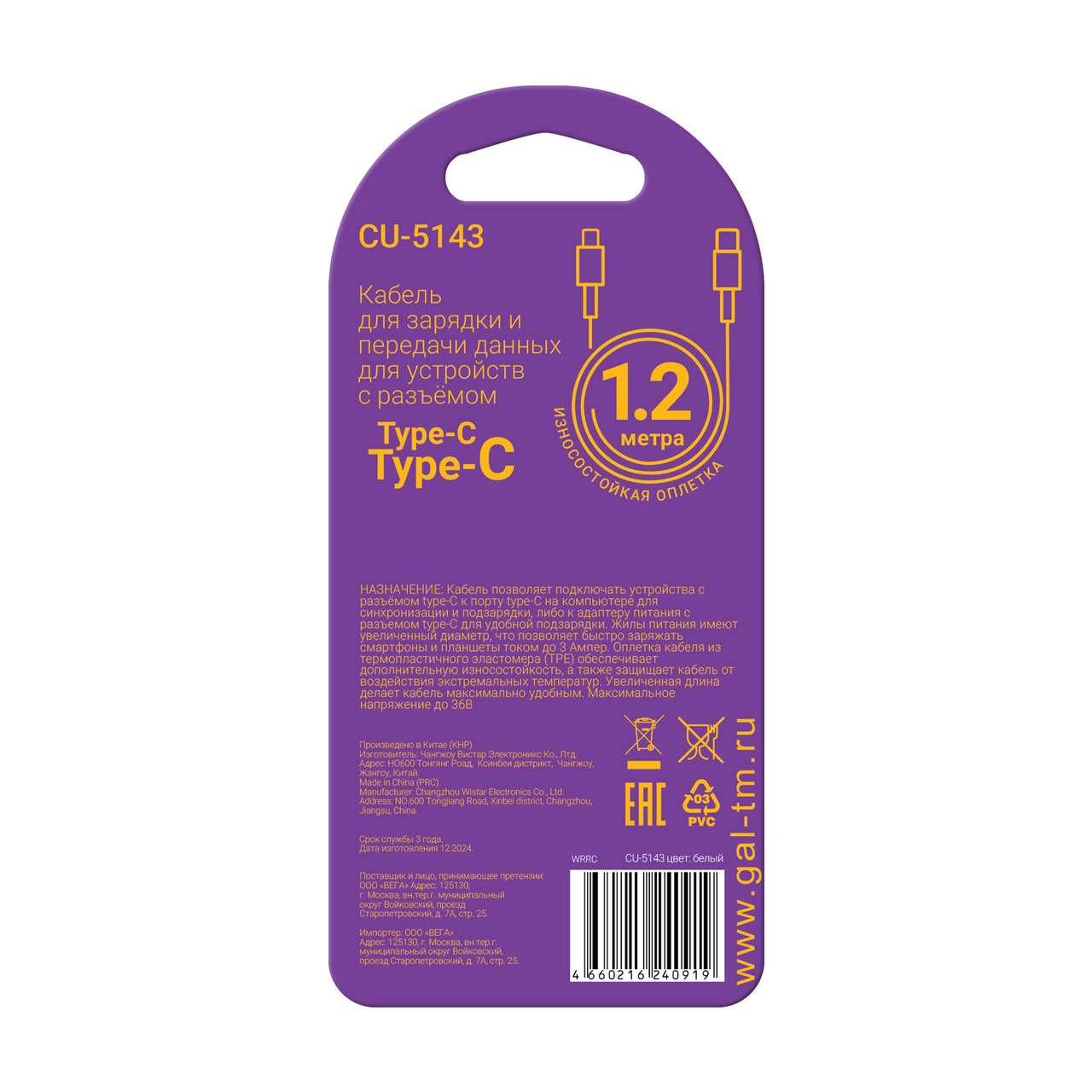Кабель GAL CU-5143 Type-C 3А, 2м