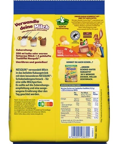 Какао-напиток Nesquik - отличное начало дня! Ведь с ним завтрак веселее! Nesquik делает молоко еще вкуснее и дополняет его пользу витаминами. Витамин D способствует усвоению кальция из молока, а также необходим для крепких и здоровых костей. А витамин С способствует нормальному функционированию иммунной системы, росту и развитию детского организма.Nesquik. Растем весело!