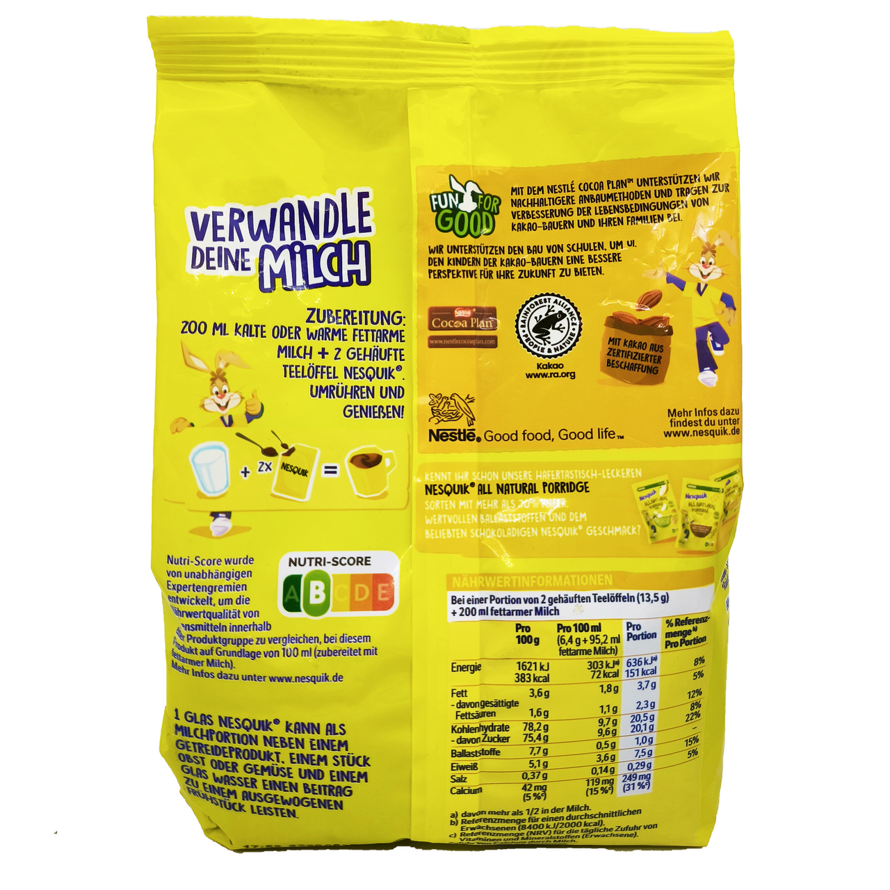 Какао-напиток Nesquik - отличное начало дня! Ведь с ним завтрак веселее! Nesquik делает молоко еще вкуснее и дополняет его пользу витаминами. Витамин D способствует усвоению кальция из молока, а также необходим для крепких и здоровых костей. А витамин С способствует нормальному функционированию иммунной системы, росту и развитию детского организма. Напиток обладает насыщенным вкусом шоколада, который дарит радость, положительные эмоции, уют и тепло. Содержит множество витаминов и минералов, необходимых для нормальной жизнедеятельности организма, а также для роста и развития детей. Приготовить напиток просто. Разогрейте молоко и добавьте в него какао-порошок, количество ложек - по вашему вкусу. Тщательно перемешайте и наслаждайтесь. Сладкий, шоколадный вкус окружит вас атмосферой праздника.