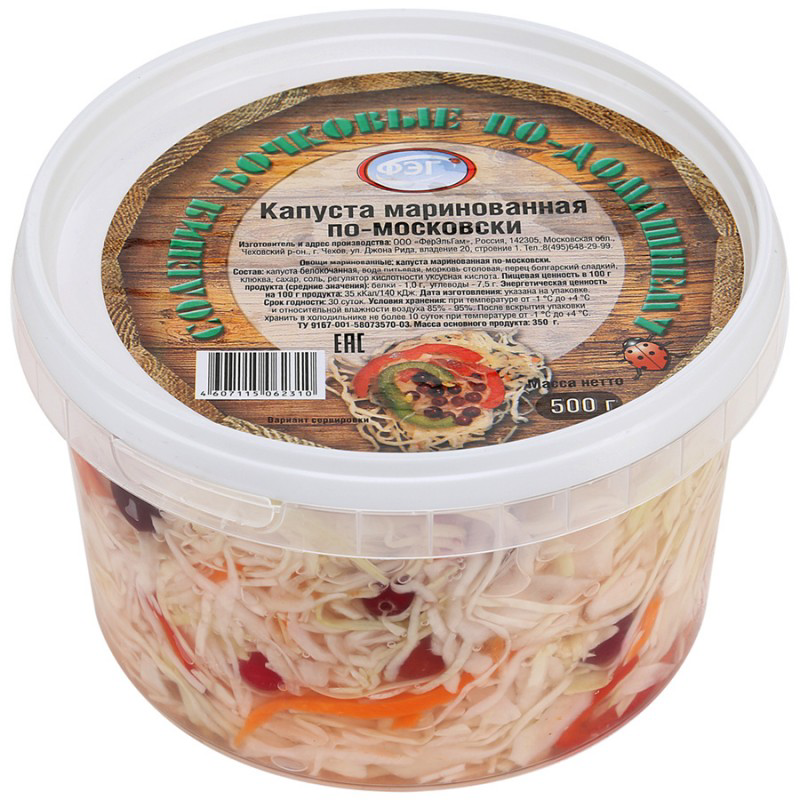 Капуста шинкованная соль, сахар, регулятор кислотности уксусная кислота.