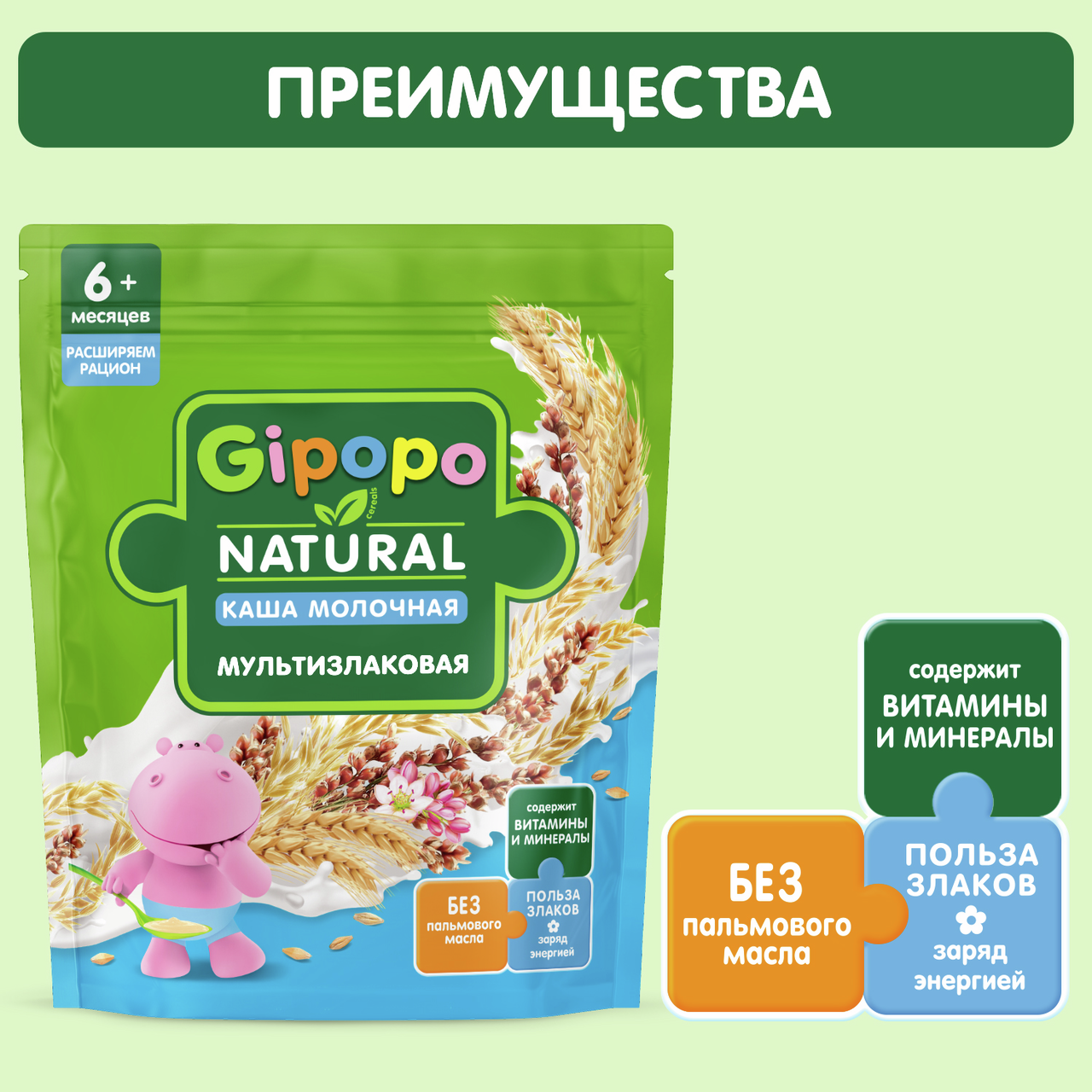 Каша молочная детская мультизлаковая Gipopo оптимально подходит для постепенного знакомства малыша с новыми сочетаниями. В ее состав входят несколько зерновых культур, они дают энергию и всё необходимое для роста и развития. Каши детские молочные Gipopo имеют сбалансированный состав:- Витамины и минералы для активного роста- Без пальмового масла- Без консервантов, красителей и ароматизаторов- Удобный формат упаковки с zip-локомПольза злаков: бережная паровая обработка сохраняет полезные свойства злаков, содержит 100% натуральные злаки.Попробуйте также жидкие каши и фруктовые пюре Gipopo.Создано экспертами, одобрено мамами.