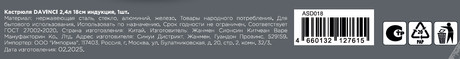 Кастрюля Davinci 2.4л 18см индукция. Линейка стальной посуды DAVINCI представляют собой сочетание стиля и функциональности, являются идеальными для приготовления ваших любимых блюд. Каждая деталь наших кастрюль продумана до мелочей: начиная с надежных ручек, которые обеспечивают безопасное использование, и заканчивая функциональной крышкой с широким стальным ободом. Встроенные дуршлаги двух диаметров и два сливных носика на корпусе позволят вам без труда слить жидкость, не прибегая к использованию дополнительных приспособлений –дуршлагов или сит. Однако, поскольку ручки изготовлены из стали, будьте аккуратны и используйте прихватки, чтобы не обжечься. Благодаря использованию высококачественной нержавеющей стали, а также совместимостью со всеми типа плит, включая индукционные, линейка посуды Davinci универсальна и полезна на любой кухне. Мы рекомендуем использовать прихватки в процессе готовки, чтобы обеспечить максимальный комфорт и безопасность. обеспечивает быстрый и равномерный нагрев благодаря специально разработанному дну. Высококачественные материалы гарантируют долговечность и сохранение эстетичного вида, а удобная рукоятка обеспечивает безопасное использование даже при длительном приготовлении. Идеальное сочетание стиля и функциональности для современной кухни.