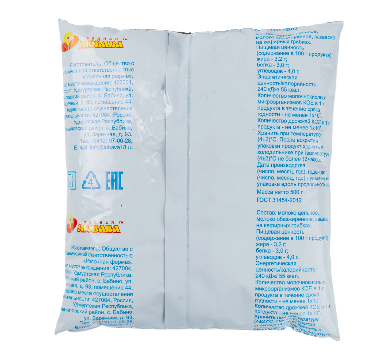 Кефир Родная Любава 3.2%, 500г