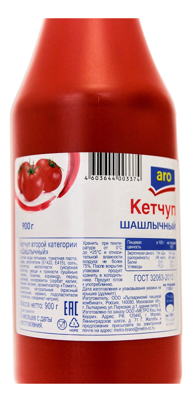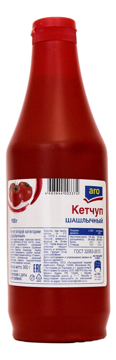 Кетчуп Шашлычный aro, 900 г — один из популярнейших продуктов. Его рецепт был разработан в Китае и не включал томаты, а в американских кулинарных книгах с присутствием помидоров он появился в начале 19 века. Конечный вид продукту придал Генри Хайнц, который создал кетчуп на основе густой томатной пасты. Продукт используют при употреблении курицы, картошки фри, некоторых салатов, он нужен для создания пиццы и становится одним из ингредиентов других соусов. Кетчуп, изготовленный на основе натуральных ингредиентов с добавлением специй, идеально подойдет к шашлыку.