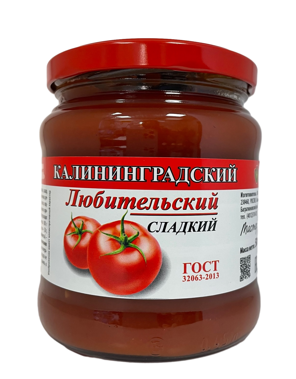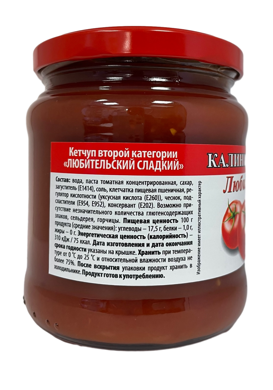 Вода питьевая, паста томатная концентрированная, сахар, загуститель Е414, соль, клетчатка пищевая пшеничная, регулятор кислотности уксусная кислота Е260, чеснок, подсластители Е954, Е952, консервант Е202.