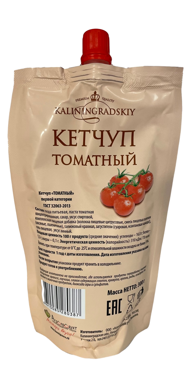 Вода питьевая, паста томатная концентрированная, сахар, уксус спиртовой, комплексная пищевая добавка (волокна пищевые цитрусовые, смесь пищевых волокон (овсяные, пшеничные), тапиоковый крахмал, загустители (гуаровая, ксантановая камеди)), соль пищевая, уксус винный.