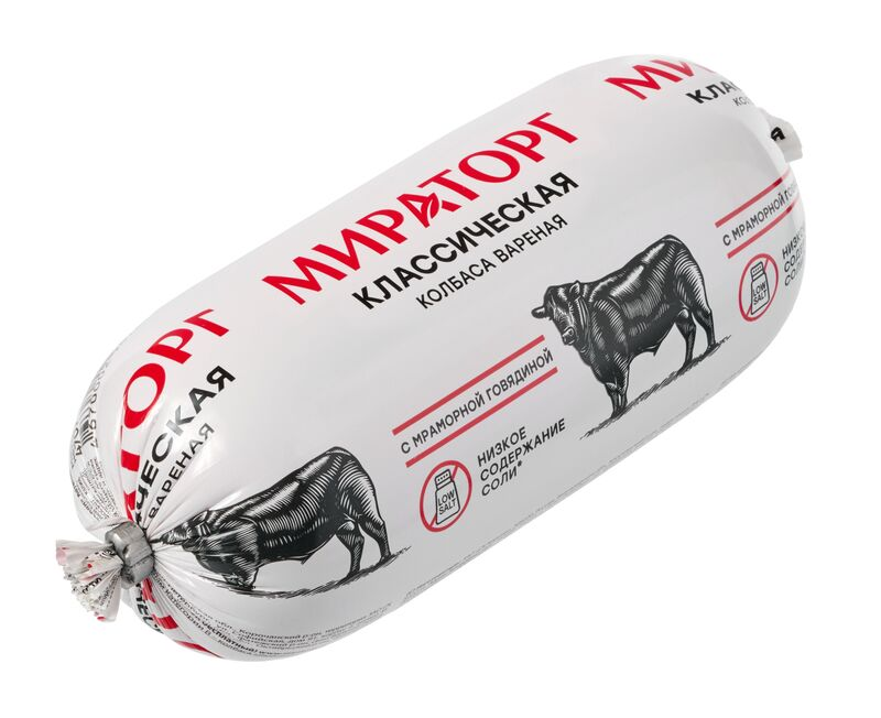Колбаса Классическая – это нежная вареная колбаса, в составе которой много настоящего мяса: отборная свинина, говядина Black Angus и курица. Колбаса отличается классическим вкусом с нотками мускатного ореха. Низкое содержание соли и минимум специй позволяют насладиться настоящим мясным вкусом.