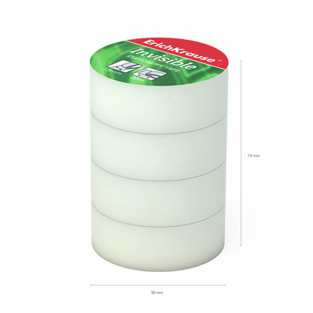 Лента Erich Krause Invisible клейкая 4 штуки, 12мм x 20м