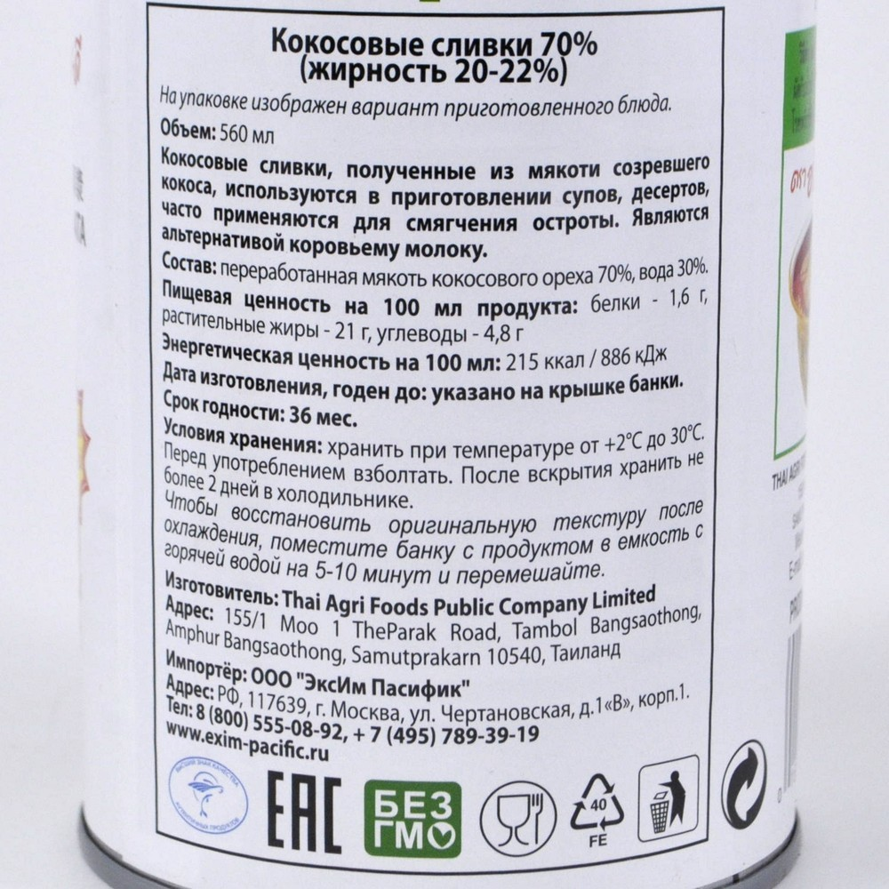 Кокосовые сливки Aroy-D Coconut Cream для готовки 70%, 560мл
