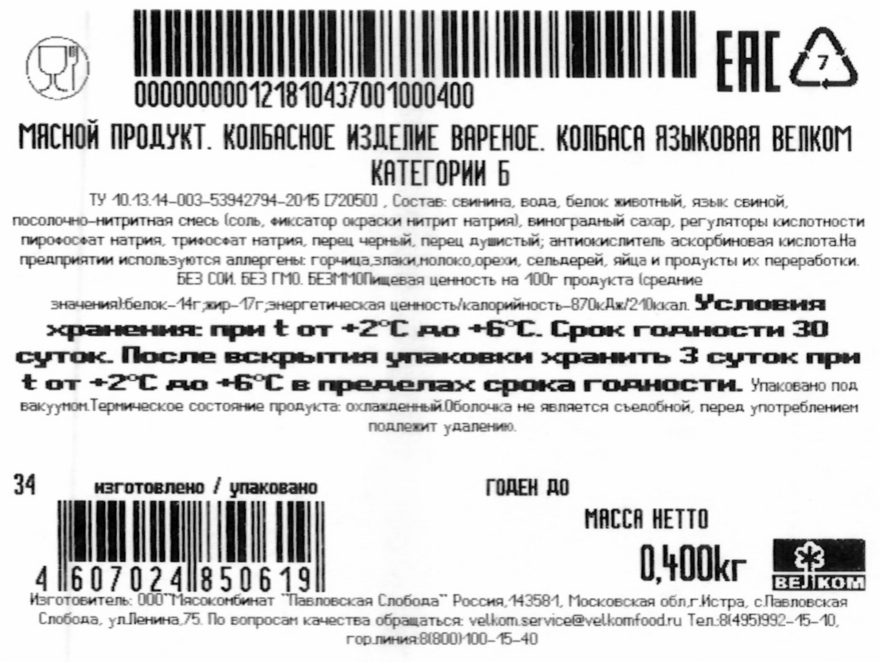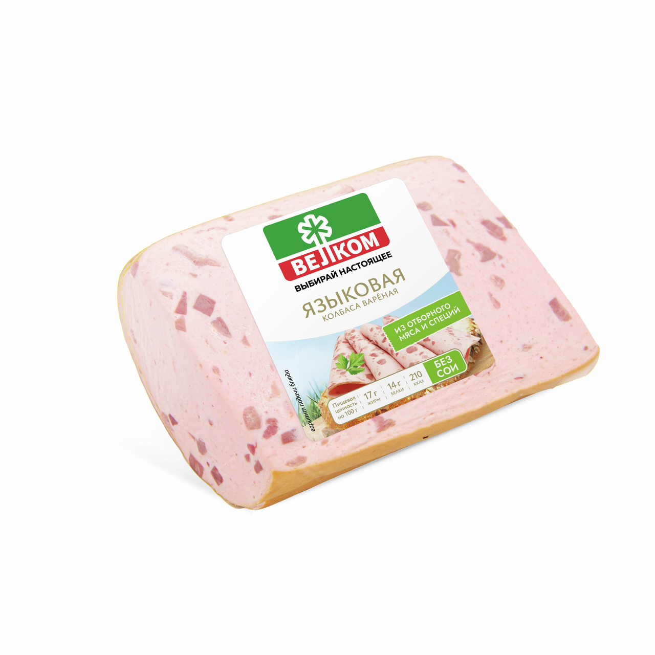 Аппетитный мясной продукт. Колбасное изделие изготавливается с добавлением языка. Продукт богат железом, витаминами и другими микроэлементами, необходимыми каждому человеку.