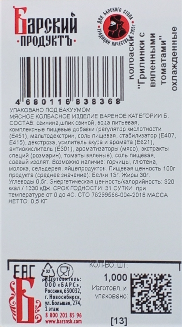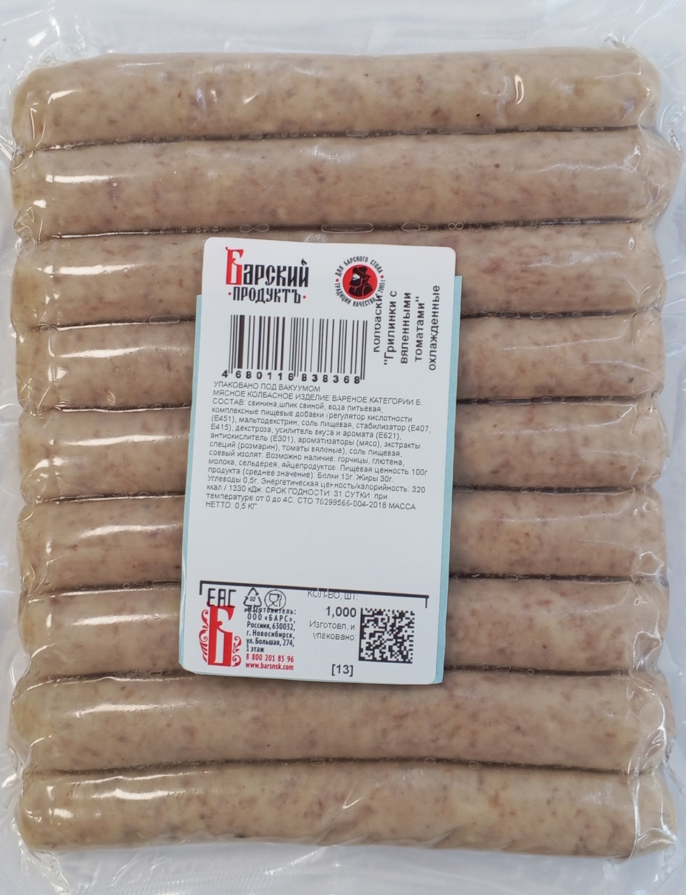 Колбаски Барский продукт Грилинки вяленые томаты, 500г