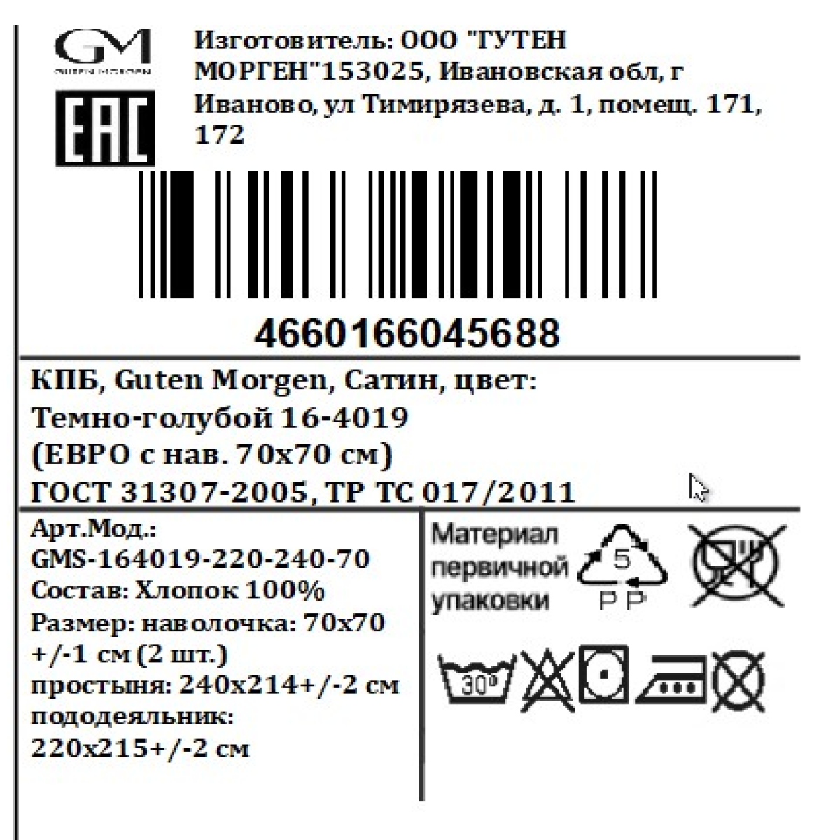 Комплект постельного белья Guten Morgen сатин темно-голубой евро