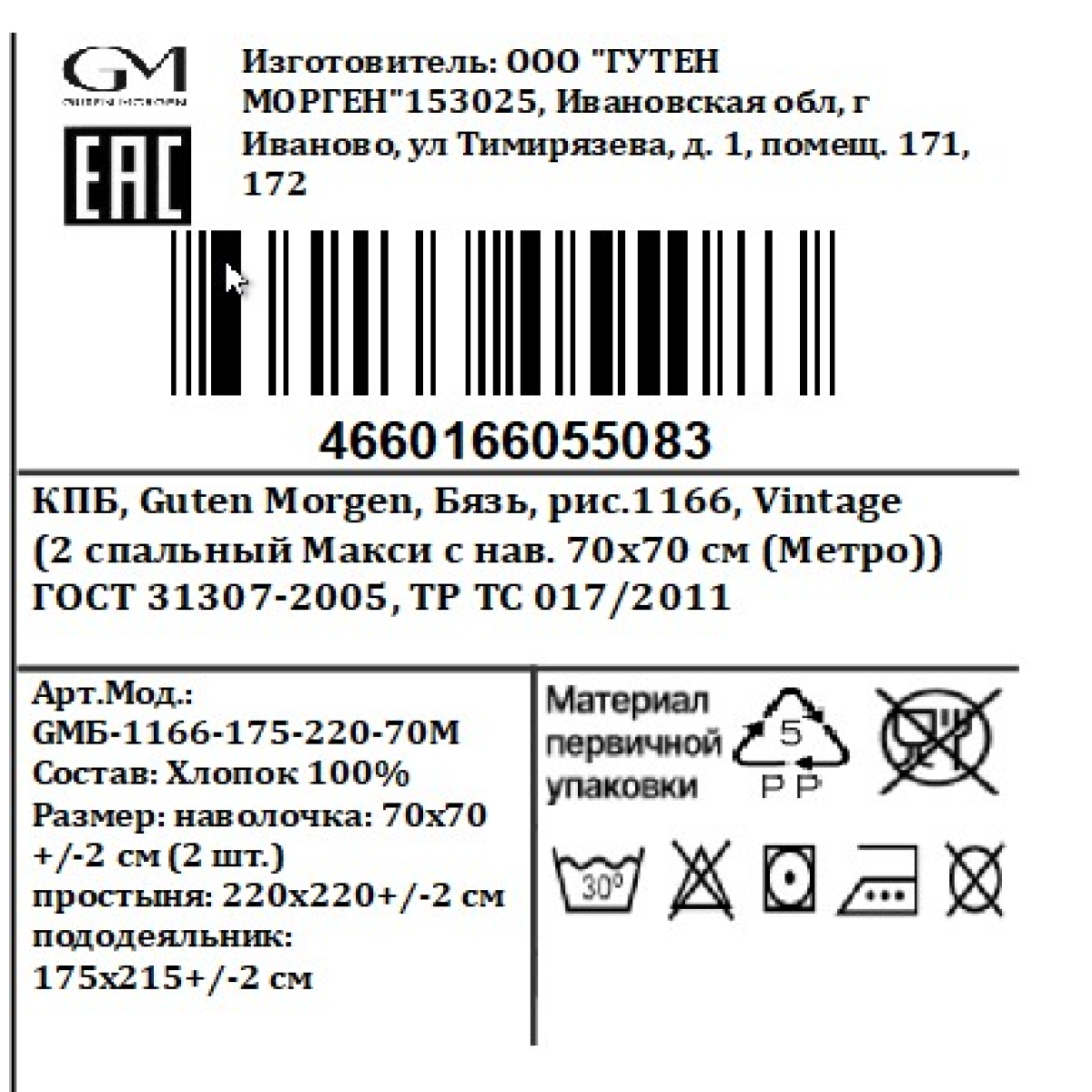 Комплект постельного белья Guten Morgen Vintage бязь двуспальное