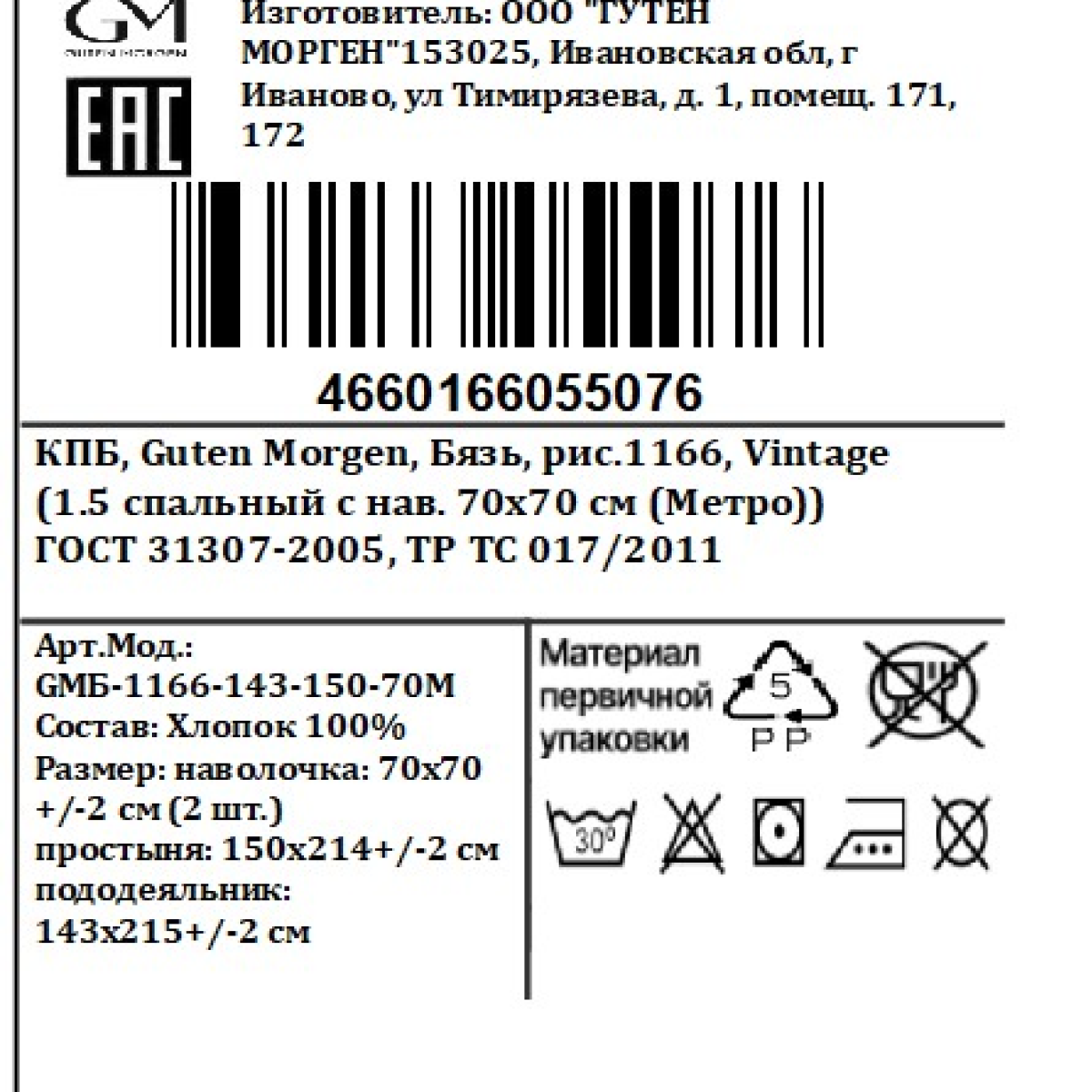 Комплект постельного белья Guten Morgen Vintage бязь полутораспальное