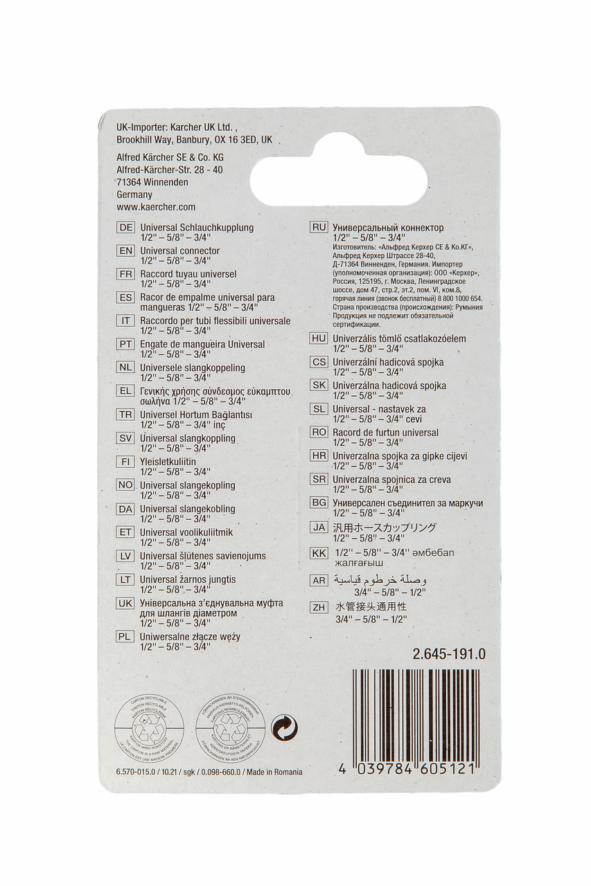 Коннектор Karcher универсальный 1/2 5/8 3/4
