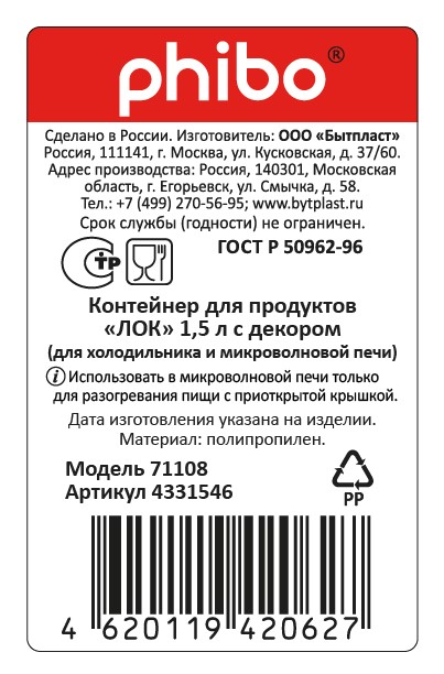 Контейнер для хранения продуктов. Удобные в использовании замки. Идеально штабелируются, сохраняют место на кухне и в холодильнике. Можно использовать в микроволновой печи и посудомоечной машине. Декоры на крышке контейнеров нанесены с помощью технологии IML: не стираются и не отслаиваются с течением времени.