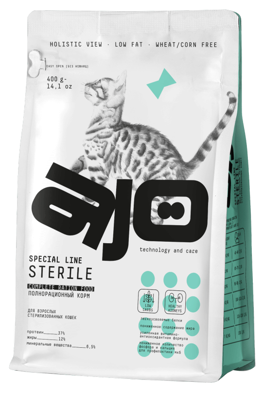 Корм сухой Ajo Sterile для кошек индейка-утка, 400г