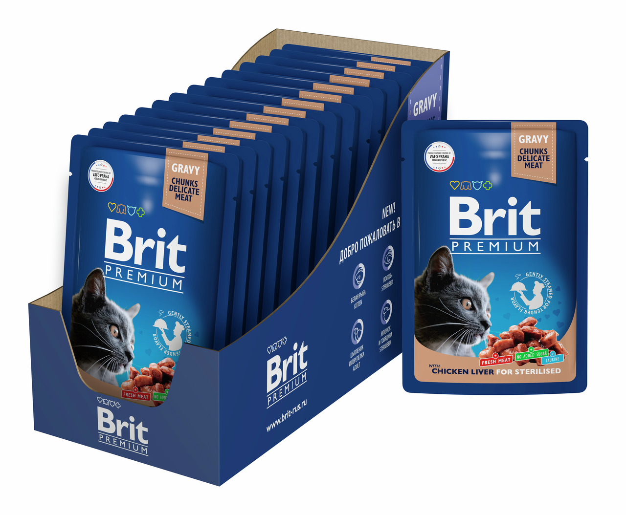 Корм влажный Brit Premium для стерилизованных кошек с куриной печенью, 85г x 14 шт
