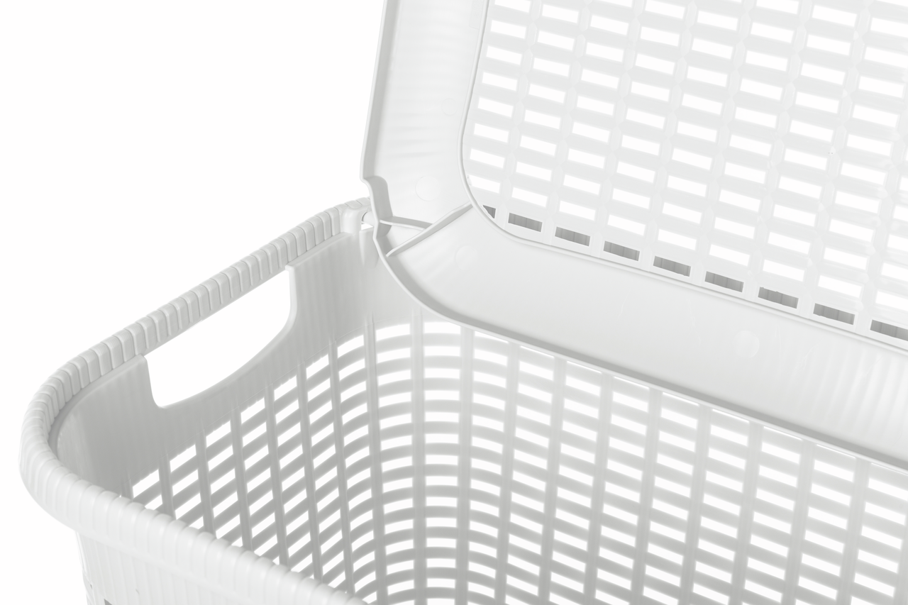 Корзина для белья, стилизованная под натуральный ротанг, гармонично впишется в ванную комнату. Для удобства переноски по бокам корзины предусмотрены специальные отверстия. Крышка скрывает содержимое корзины от посторонних глаз, а также может служить дополнительным местом для хранения легких туалетных принадлежностей. Корзина изготавливается из прочного и долговечного полипропилена, отвечающего требованиям влажного помещения. Естественные нейтральные цвета и приятная фактура делают корзину эстетически привлекательным дополнением интерьера ванной комнаты.
