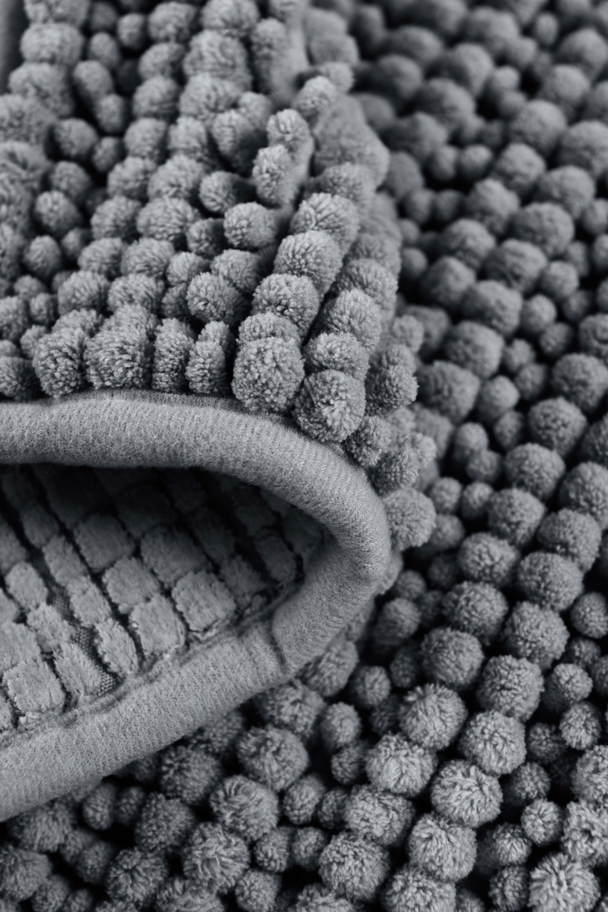 Tarrington House Коврик для ванной серый из синели, 55 x 75см идеально подходит для ванной комнаты, обеспечивая комфорт и уют. Синель - это мягкий и пушистый материал, который изготавливается из коротких ворсинок, прикрепленных к основе. Очень приятен на ощупь, легко стирается и быстро сохнет.