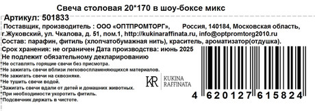 Свеча Kukina Raffinata столовая шоубокс в ассортименте, 20 x 170мм