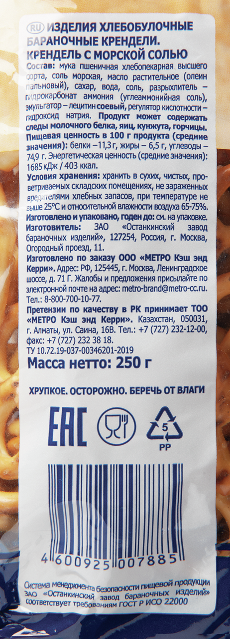 Крендель Metro Chef с морской солью, 250 г станут дополнением основного рациона в качестве закуски. Они подойдут для быстрого перекуса, поэтому могут употребляться в пищу во время дружеских посиделок, перерывов на работе, школьных переменок. Если нет возможности полноценно поесть, то это лакомство сможет временно утолить чувство голода. Вкусные, хрустящие крендельки с морской солью, изготовленные из экологически чистого сырья, помещены в компактную упаковку, которую можно всегда брать с собой.