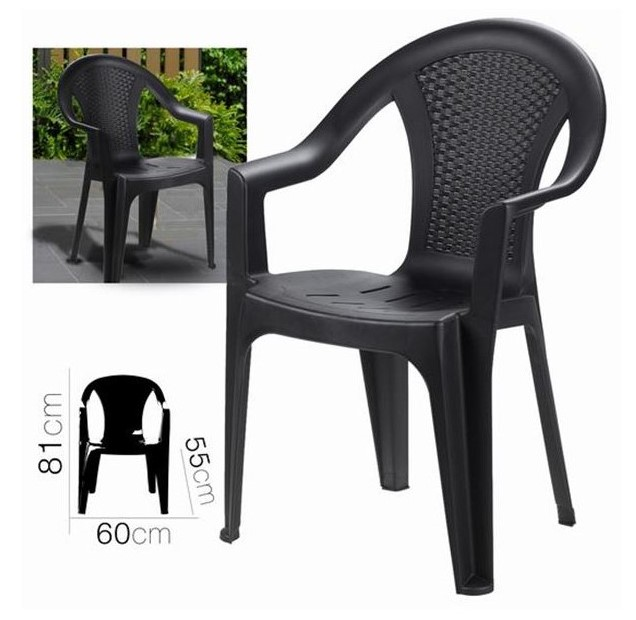 Кресло Progarden пластиковое антрацит, 54 x 56 x 81 см – практичный предмет мебели, выполненный из качественного материала. За счет такого исполнения модель легкая, но в то же время достаточно прочная, выдерживает высокие нагрузки. Ее несложно переносить с места на место, а также транспортировать. Это отличный вариант для использования в качестве дачной мебели. Кресло может быть размещено как внутри помещения, так и на улице. При необходимости его можно взять с собой в поездку на пляж или пикник. За счет универсального цвета и лаконичного дизайна оно удачно будет сочетаться с другими предметами мебели из пластика.