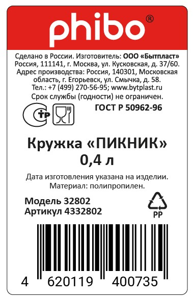 Кружка Phibo Пикник, 400мл