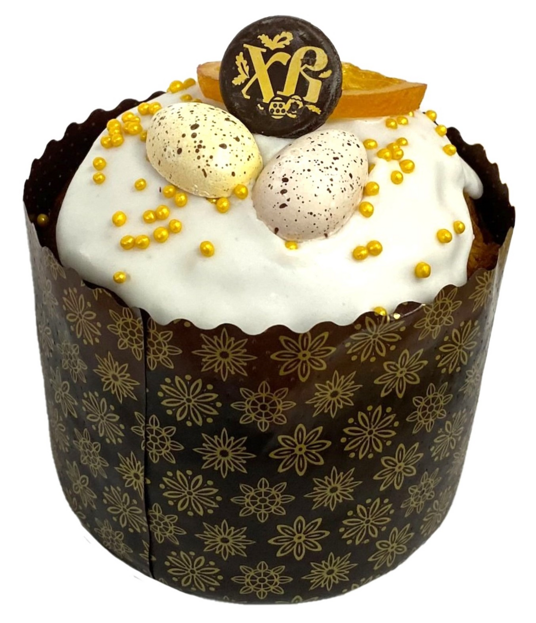 Кулич можно подать к столу как самостоятельный богатый десерт. Он отлично сочетается с молоком и молочными продуктами. Выпечен по традиционной рецептуре в бумажной термоформе, глазирован белой помадкой, украшен яркой разноцветной сахарной посыпкой.