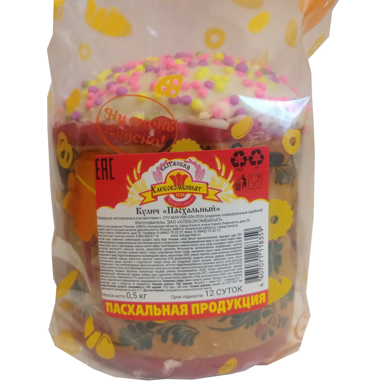 Кулич Калужский хлебокомбинат Пасхальный, 500г