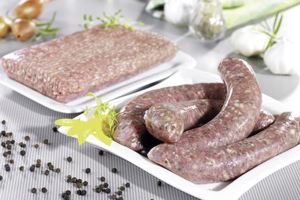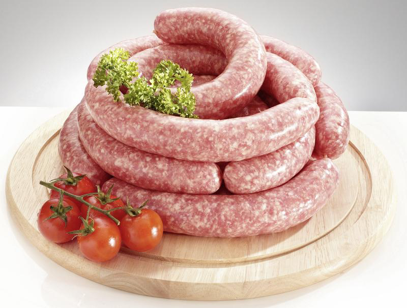 Свинина; смесь специй для колбасок Нюрнбергская (специи (перец, майоран, имбирь), соль, декстроза, экстракты специй); черева свиные.