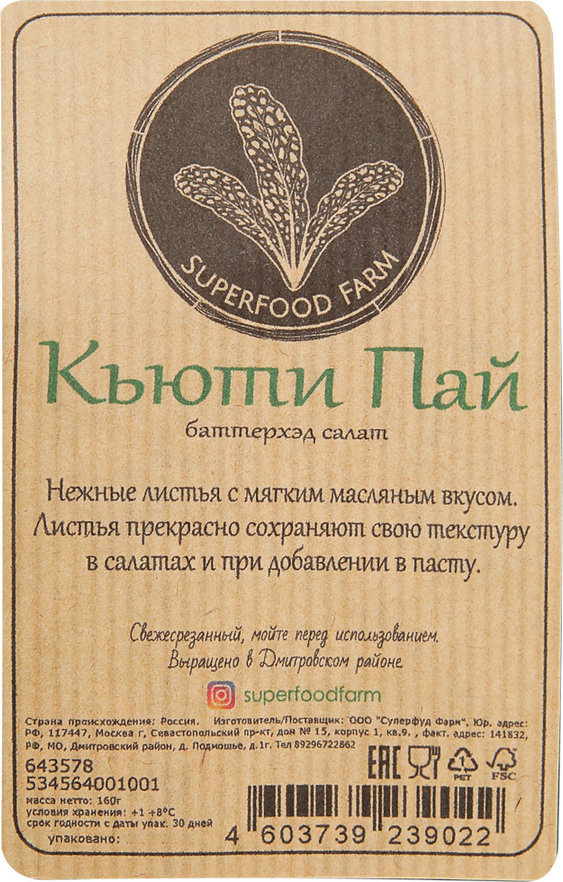 Салат Superfood Farm Кьюти пай, 120г имеет нежные сочные листья с масляным ненавязчивым приятным вкусом, которые прекрасно сохраняют свою текстуру в салатах и при добавлении в горячие блюда. Кочан очень легко и быстро разбирается на небольшие листочки.