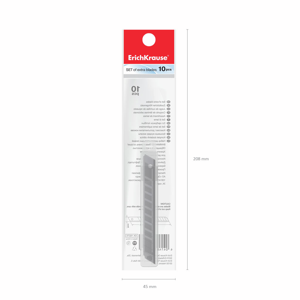 Лезвия для ножа Erich Krause 18мм - сегментированное износостойкое стальное лезвие с двухсторонней заточкой для канцелярского ножа. Поставляется в пластиковом контейнере для безопасного хранения.