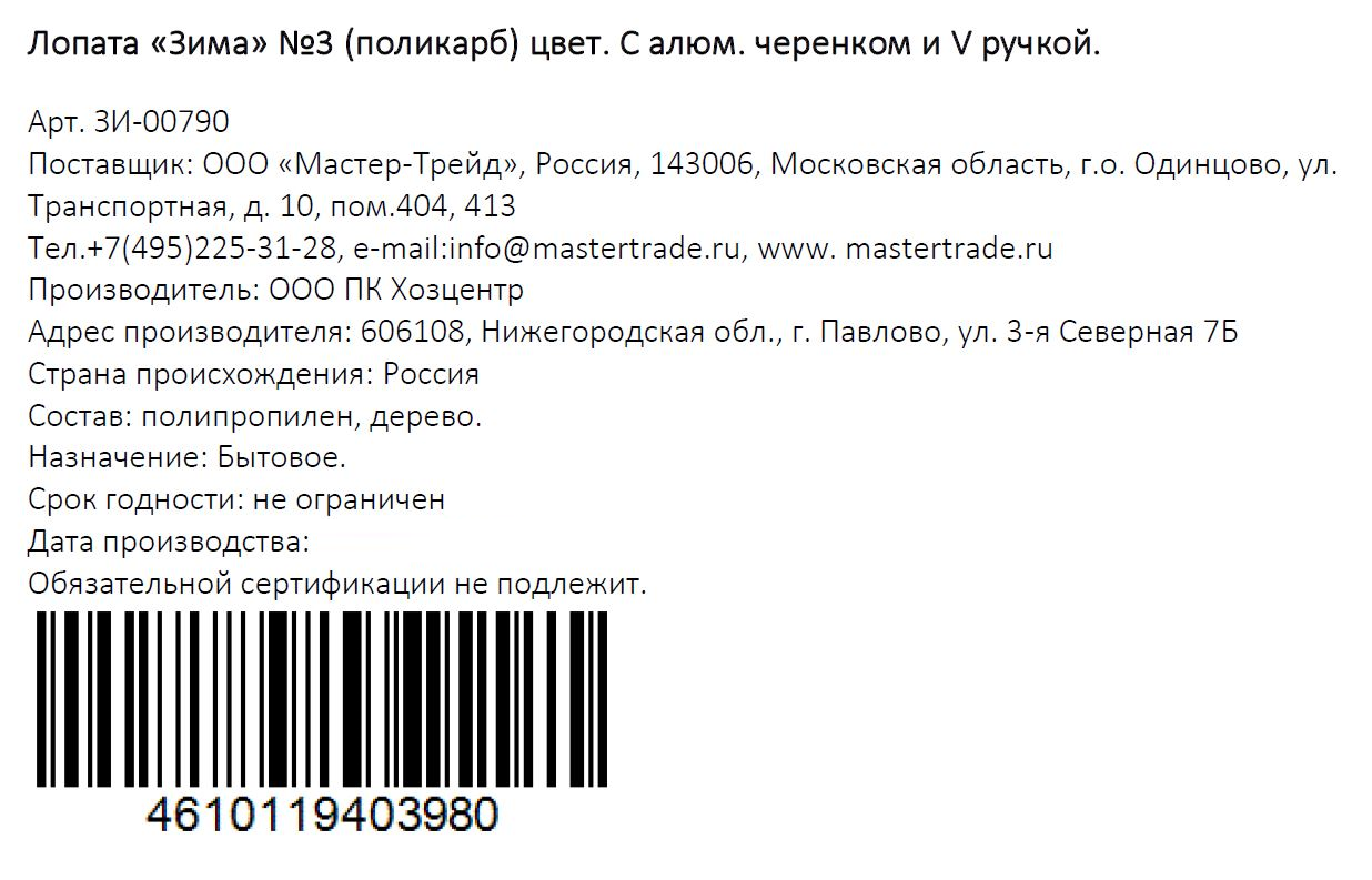 - Комплектация Лопата - 1 шт.