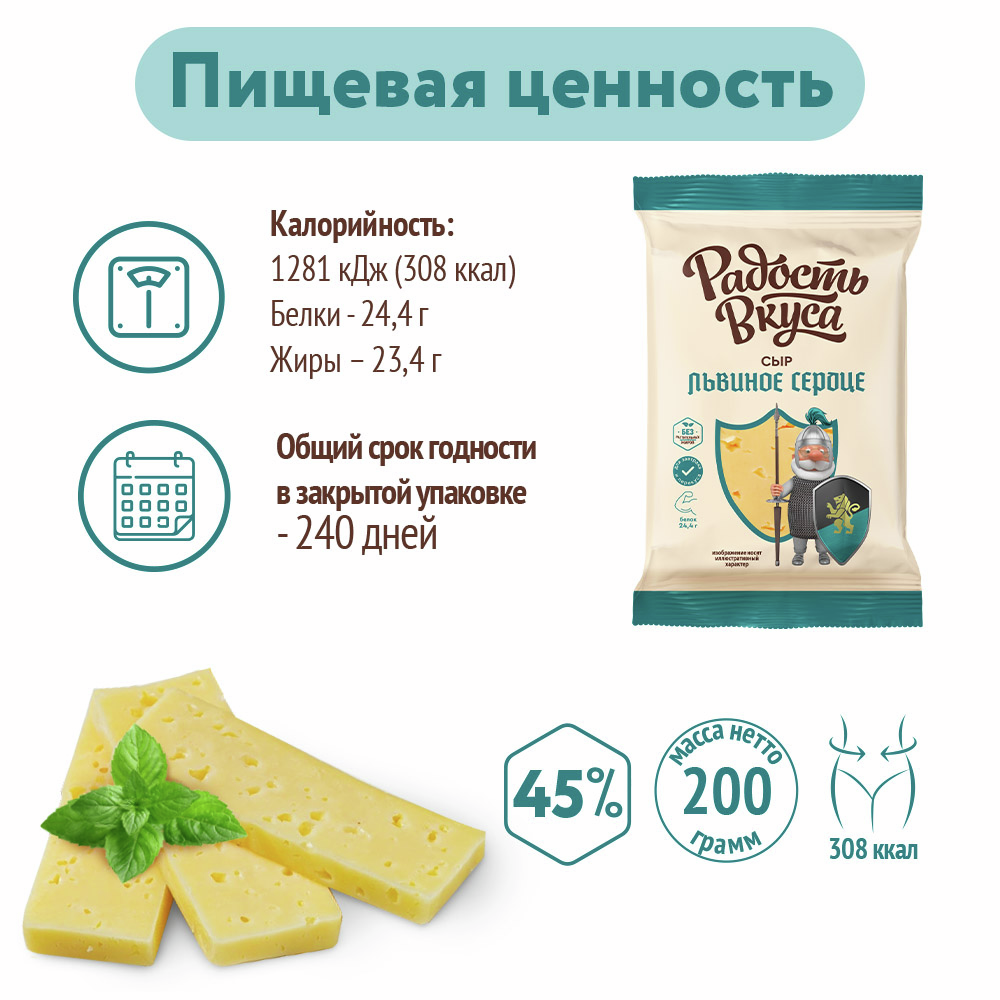 Сыр Радость вкуса Львиное сердце 45%, 200г