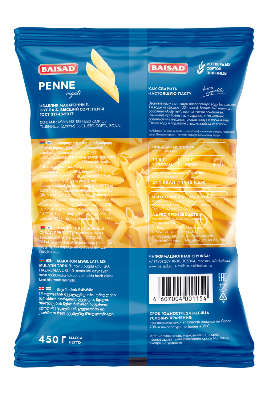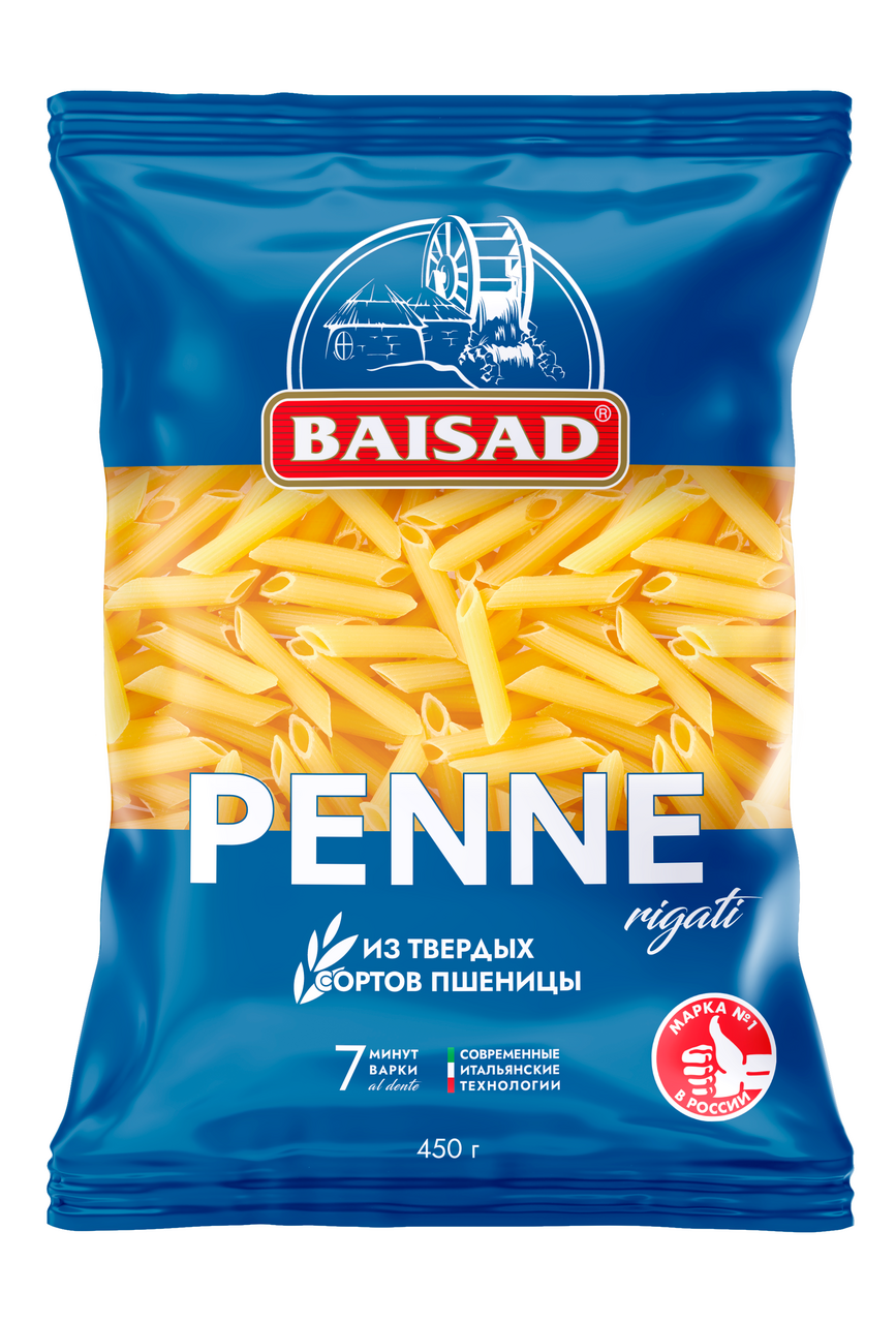 Макароны перья Baisad Penne Rigati высший сорт ГОСТ, 450г