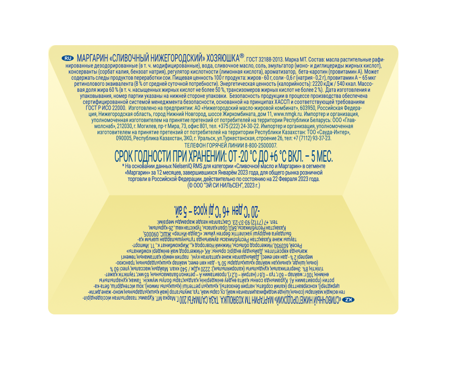 Маргарин Хозяюшка Сливочный Нижегородский ГОСТ 60%, 200г