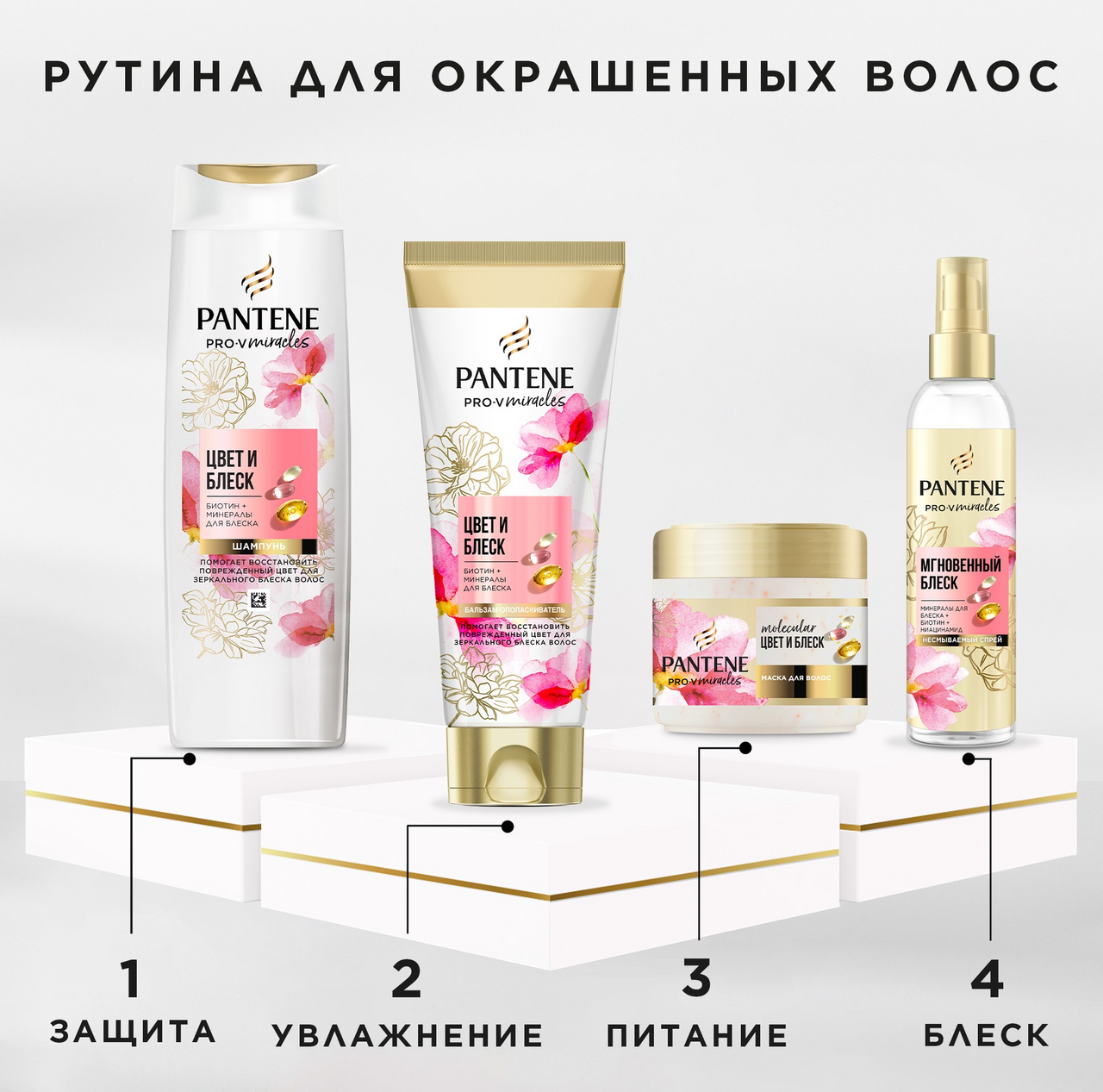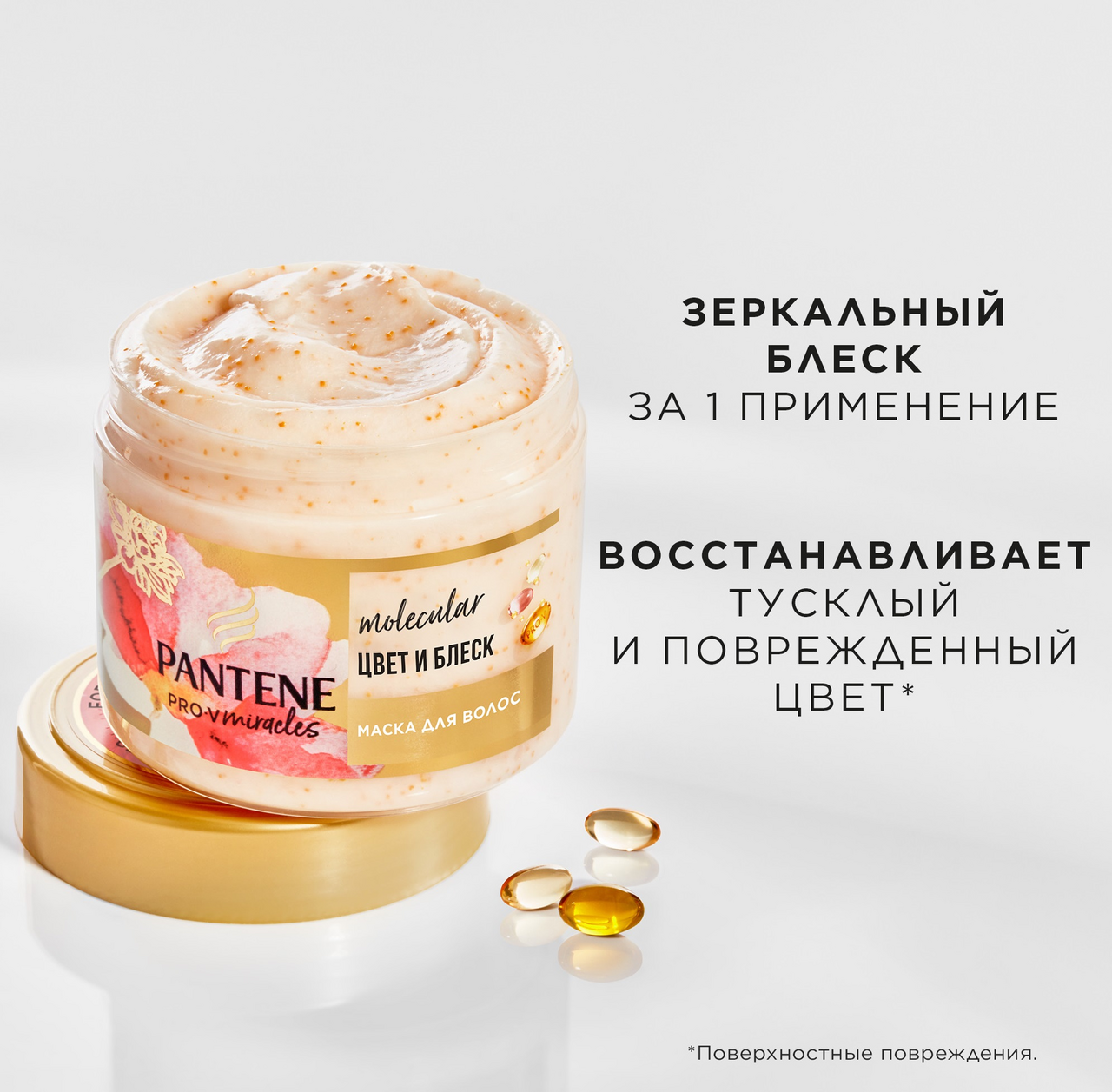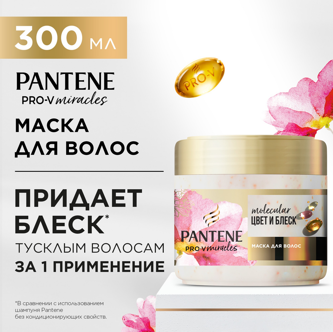 Мечтаете, восстановить тусклый оттенок? Верните жизнь окрашенным поврежденным волосам с маской для волос Pantene Цвет и Блеск для профессионального ухода. Формула с биотином, минеральным комплексом и высочайшей концентрацией смеси Pro-V помогает восстановить волосы после окрашиваний и химических процедур. Коллекция придает блеск тусклым волосам за 1 применение, питает волосы и работает на видимом уровне (разглаживает и поддерживает оттенок) и невидимом уровне (восстанавливает изнутри). Откройте полную гамму средств Цвет и Блеск, включая шампунь, бальзам-ополаскиватель для волос и масло для зеркального блеска.