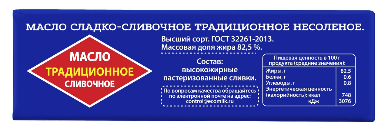Изготовлено из эмульсионной жировой основы. Ее преобладающей составной частью является молочный жир, произведенный из молочных продуктов путем отделения от них жировой фазы и равномерного распределения в ней молочной плазмы. Традиционное сливочное масло с бархатным вкусом и тонким ароматом натуральных сливок. Идеально для любых блюд, но в особенности для десертов: попробуйте приготовить классический масляный крем для тортов и капкейков. Для его производства используют новейшее оборудование и высокожирные пастеризованные сливки из коровьего молока. Масло получается несоленое, с нежным вкусом, плотной однородной структурой, светло-желтого цвета, с тонким сливочным ароматом. Подходит для любой цели – его можно �� положить на бутерброд, и добавить в тесто для выпечки. Продукт не крошится, когда его нарезают, не раскисает в мягком состоянии, легко намазывается на хлеб. Продается в плотной фольгированной обертке.