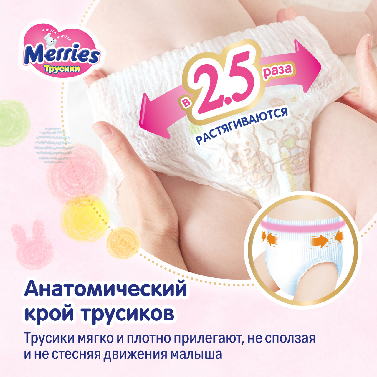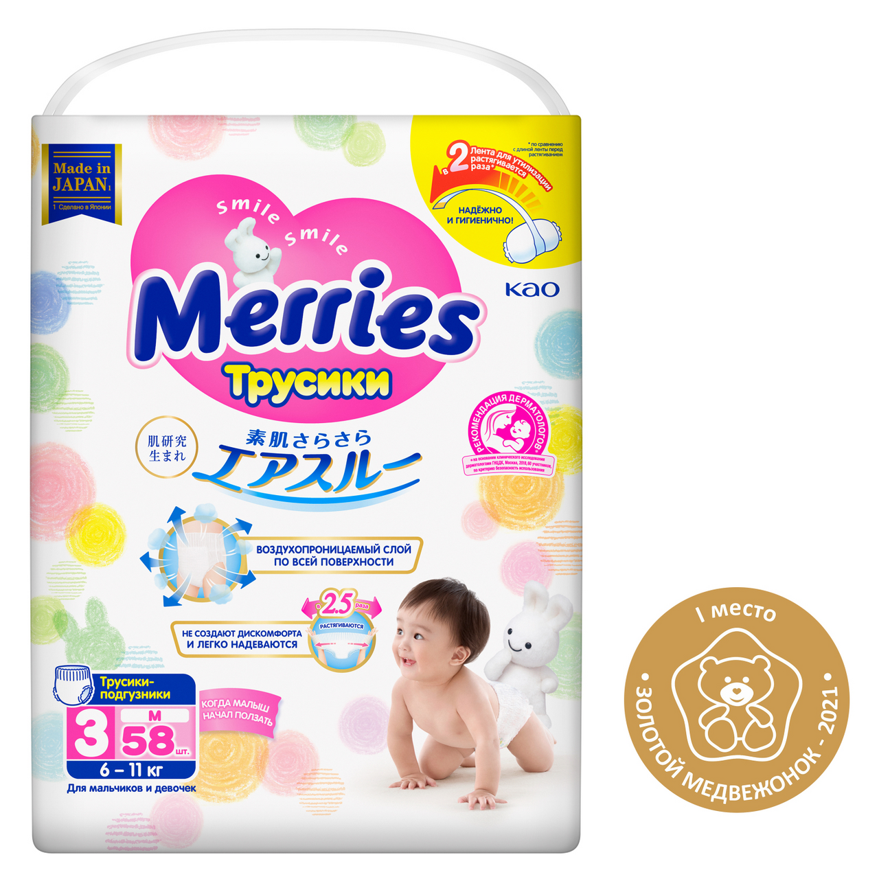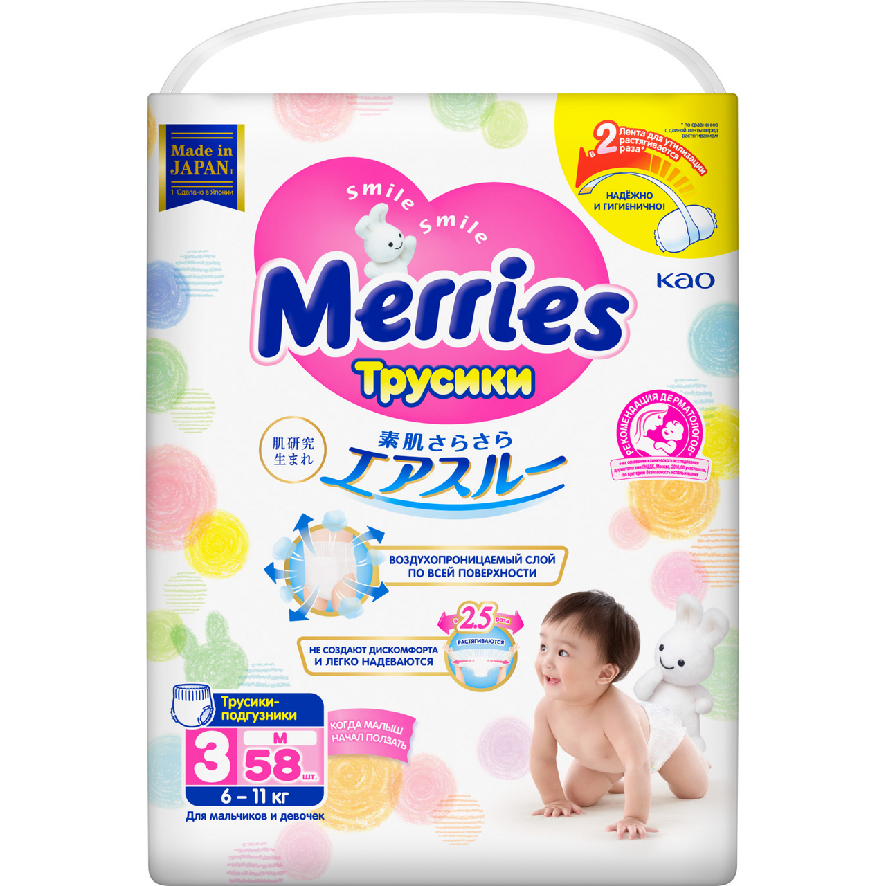 Подгузники-трусики Merries M 6-10кг, 58шт