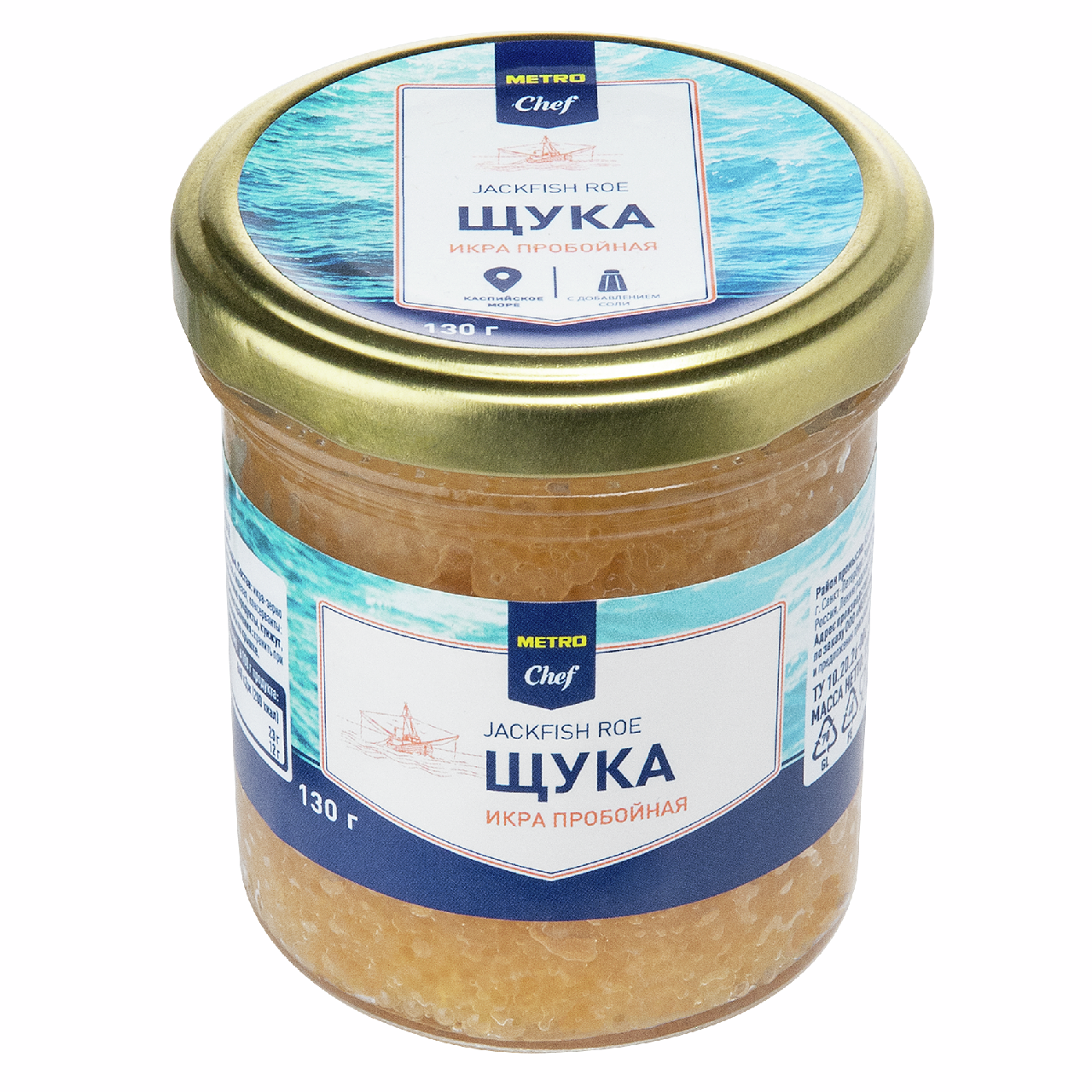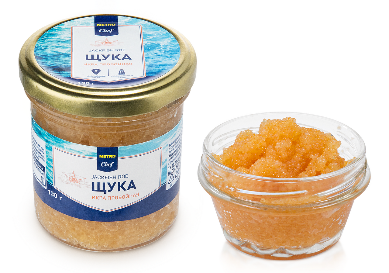 METRO Chef Икра щуки пробойная, 130 г – желанный гость на любом столе. Продукт обладает приятной консистенцией, легко намазывается на хлеб и батон. Вкус у икры слегка солоноватый. Такой продукт дополнит собой бутерброды, блинчики, тарталетки и прочих закусок, а также подойдет для оформления разных блюд. Икра богата белком и очень полезна для организма человека. Ее рекомендуется включать в повседневный рацион.